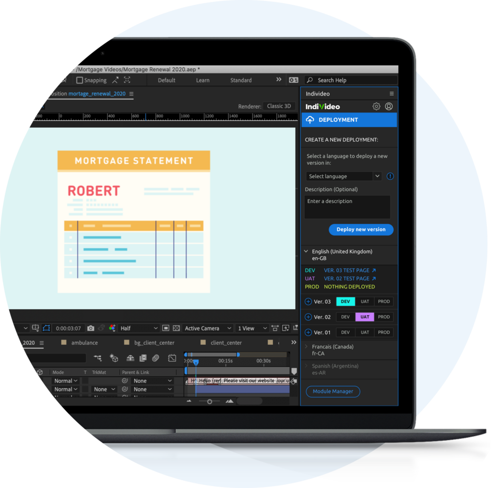 Bring it all together and directly address your audience by injecting data into your video. With options like using a CRM data connector, uploading data files or using realtime data injection, we can adapt to your needs.